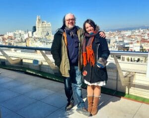 En la azotea, tras una entrevista en la radio con Ismael Clemente, gran conocedor de la ciudad de Madrid, la más sumergida. Por eso subimos a verla desde los cielos.